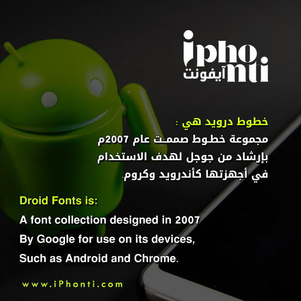 خط أندرويد – درويد عربي كوفي للموبايلات .. خطوط درويد هي : مجموعة خطـوط صممــت عام 2007م بإرشاد من غوغل لهدف الاستخدام في أجهزتها كأندرويد وكروم.